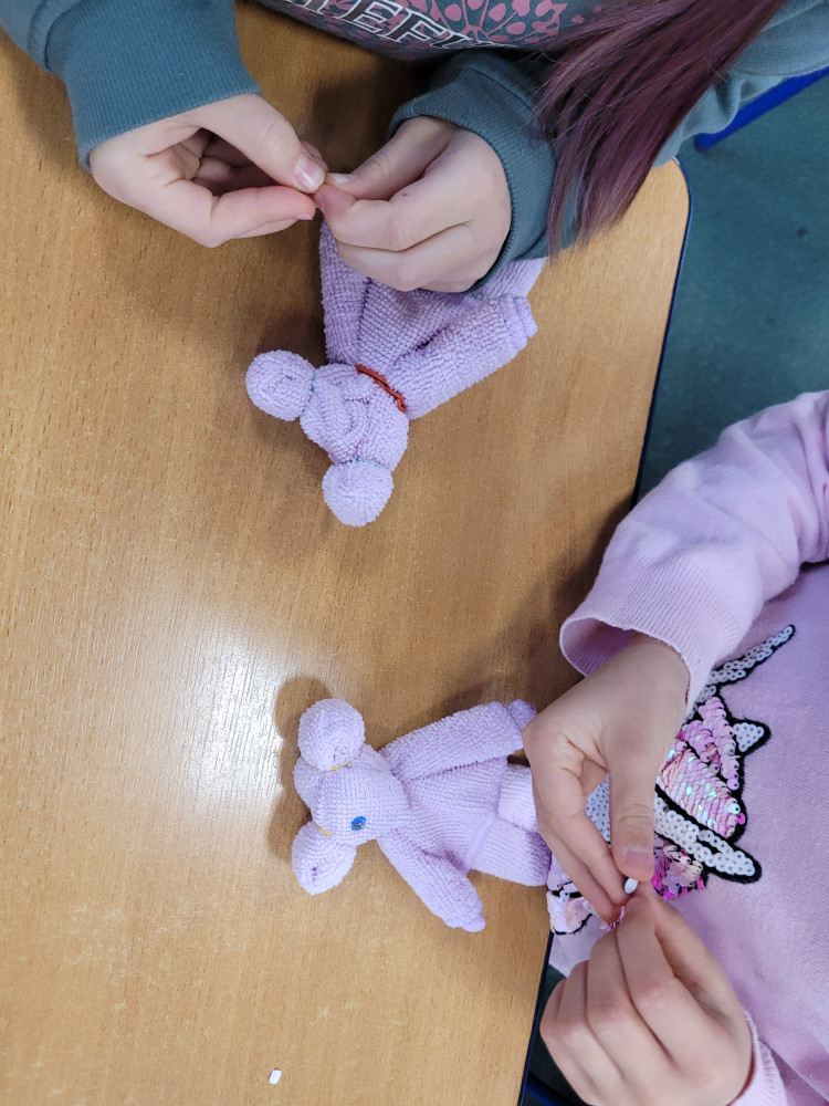 W jeden z jesiennych listopadowych dni świętowaliśmy w świetlicy Dzień Pluszowego Misia. To bardzo radosny i wyjątkowy dzień dla dzieci, ponieważ mogły w tym dniu przynieść swoje ulubione pluszowe misie. Podczas filmów edukacyjnych i prezentacji uczniowie poznali historie misia i wysłuchały wiele ciekawostek na jego temat jako bohatera wielu utworów literatury dziecięcej. Uczyliśmy się również robić własnoręcznie miski ze ścierki z mikrofibry, doskonaląc przy tym małą motorykę. Dzieci z ogromnym zaangażowaniem i przyjemnością wykonały pracę. Miś stał się u wielu ulubioną zabawką zabraną do domu i wielokrotnie przynoszona do szkoły jako zawieszka do plecaka.