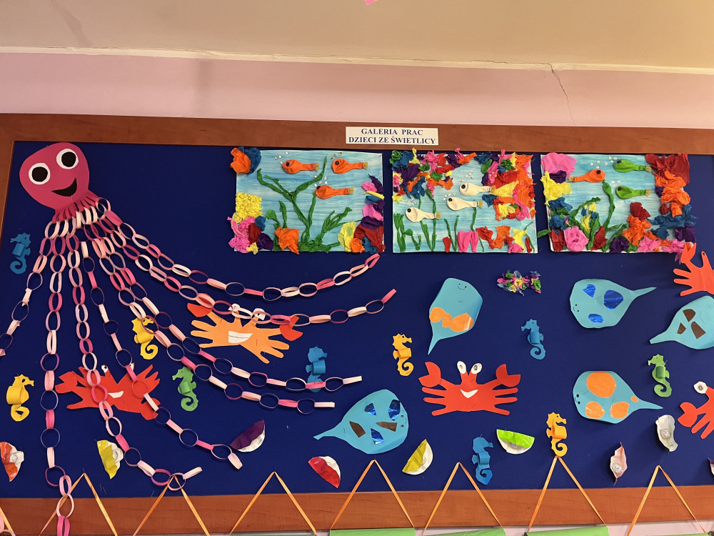 W pierwszym tygodniu czerwca wyruszyliśmy w podwodną podróż poprzez rozmowy, prezentacje multimedialne i filmy edukacyjne. Dzieci mogły zapoznać się z nazwami zbiorników wodnych i różnicami między nimi, poznać wiele ciekawych i wyjątkowych stworzeń podwodnych oraz omówić sposoby ochrony środowiska wodnego.