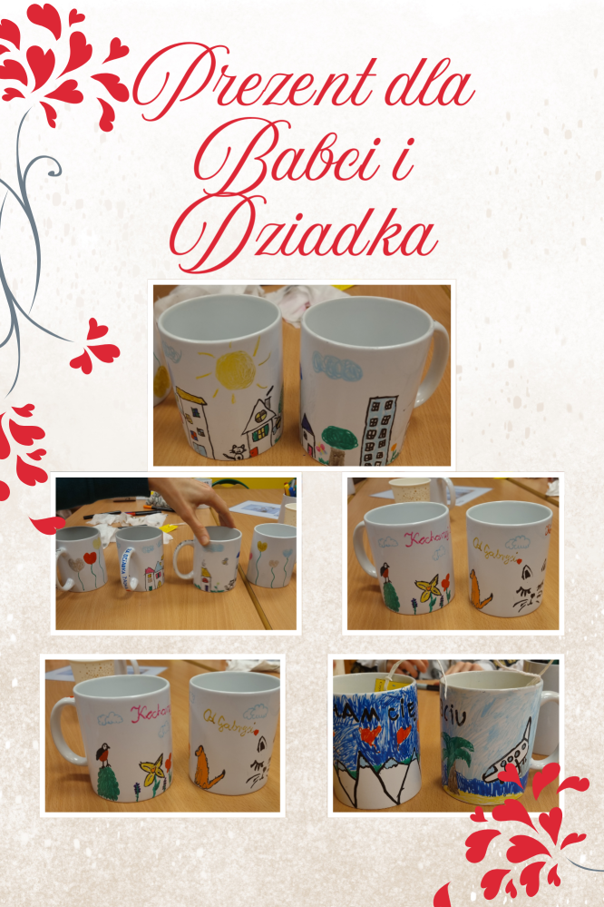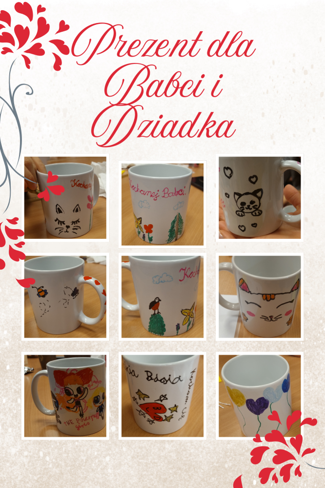 Wzorem lat ubiegłych świetlica szkolna zorganizowała warsztaty dla dzieci i rodziców z okazji Dnia Babci i Dziadka. Wydarzenie odbyło się 16.01.2025r. Frekwencja dopisała i dzieci ochoczo przystąpiły do pracy. W tym roku zadaniem było malowanie kubków. Dzieci otrzymały białe kubki, specjalne flamastry do ich ozdabiania, wydrukowane wzory, które stanowiły inspirację do kreatywnej pracy, którą cechowało zaangażowanie, zapał i twórcze podejście. Towarzyszyła temu klimatyczna muzyka. W ciągu zajęć trwających 1,5 godziny powstały naprawdę piękne prace. Rodzice otrzymali wskazówki, w jaki sposób utrwalić namalowany wzór.
