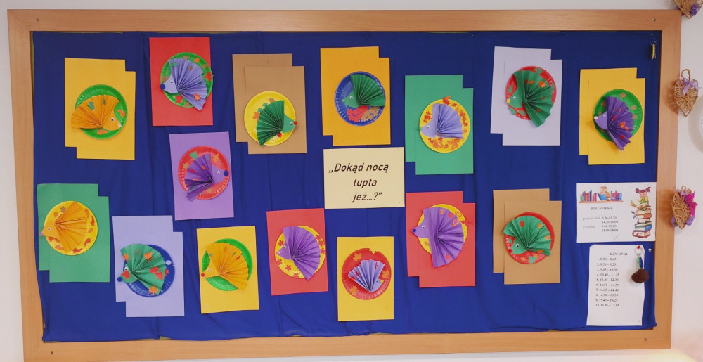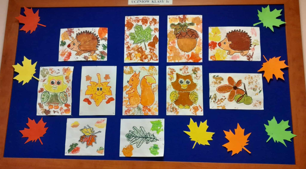 Jesienne dni były również inspiracją do rozmów o porach roku, zmianach w przyrodzie, a także o prawach zwierząt, pracy weterynarza, wolontariusza i roli schronisk dla zwierząt. W ramach tych tematów uczniowie wykonali liczne prace plastyczne np.: ,,Dyniowe witraże’’, ,,Jesienne jeże’’, ,,Zwierzęta leśne’’, ,,Jesienne obrazy’’, ,,Maski ulubionego zwierzaka’’, ,,Jesienne dekoracje’’, które ozdobiły szkolne korytarze oraz sale świetlicowe.