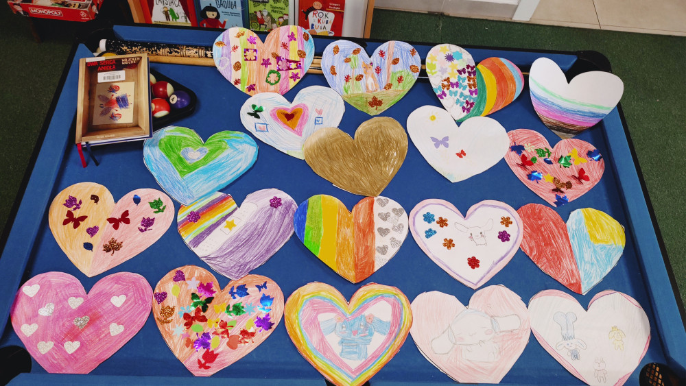 Włączyliśmy się również w ogólnopolską akcję „Czytamy z sercem”, promującą transplantologię, czytelnictwo oraz troskę o emocje. Z tej okazji w świetlicy szkolnej odbyło się spotkanie on-line z Wojciechem Widłakiem, autorem wzruszającej książki pt. „Dwa serca anioła”. Spotkanie autorskie dostarczyło uczniom wielu emocji i skłoniło do refleksji na temat zdrowia, przyjaźni i wrażliwości. Zwieńczeniem akcji było wykonanie kolorowych serc przez uczniów.