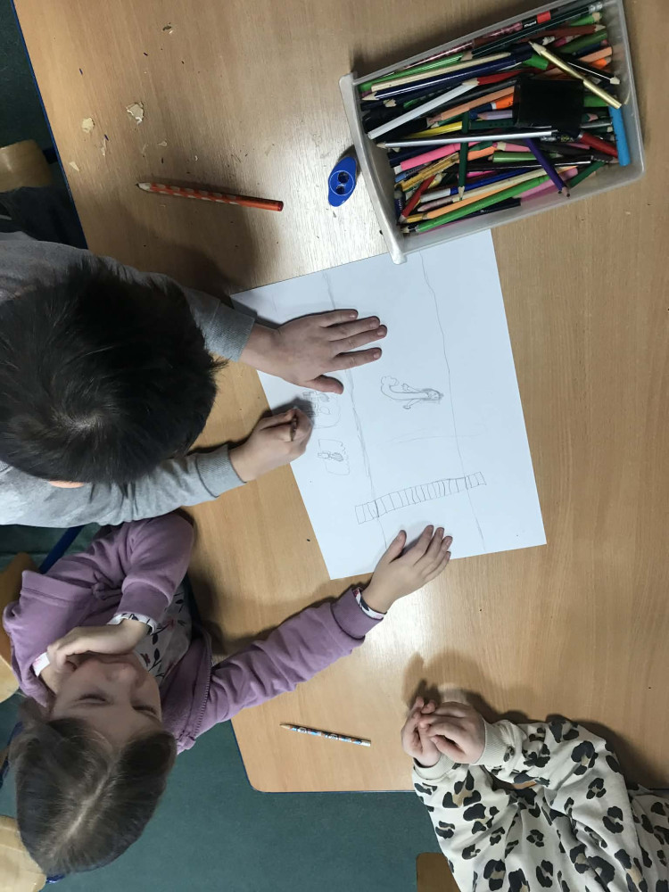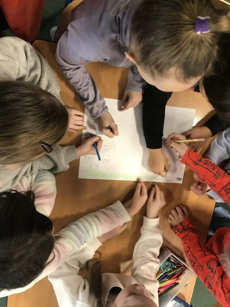 Nie zabrakło również działań artystycznych. Uczniowie wykonywali piękne makiety oraz różnorodne prace plastyczne inspirowane poznanymi historiami. Powstały niezwykłe prace pełne kolorów, kreatywności i dziecięcej wyobraźni.