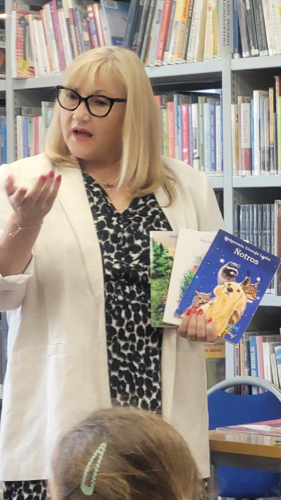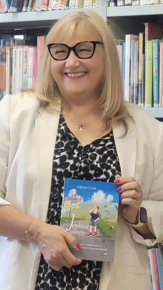 W jeden z pogodnych wrześniowych poranków wybraliśmy się do biblioteki przy ul. Radzymińskiej 121 na spotkanie autorskie. Spotkanie zaplanowane było na godzinę 9.00 i udaliśmy się tam autobusem komunikacji miejskiej. Rozmowa poprzedzająca wyjście dotyczyła zasad bezpieczeństwa podczas podróży, wzajemnego szacunku oraz kulturalnego zachowania się w trakcie spotkania. W bibliotece powitały nas uśmiechnięte panie wraz z gościem wydarzenia, autorką między innymi książki „Językowe zakręty” panią Małgorzatą U. Laską. Pani Małgorzata przedstawiła dzieciom swój autorski teatrzyk ilustrowany własnoręcznie pt. ”Świat zwierząt”. Dużą atrakcją spotkania były również zabawy językowe, w których dzieci bardzo chętnie uczestniczyły. Zwieńczeniem zajęć była prezentacja najnowszych książek pani Małgorzaty, oraz historii ich powstania, które chętne dzieci mogły zakupić.