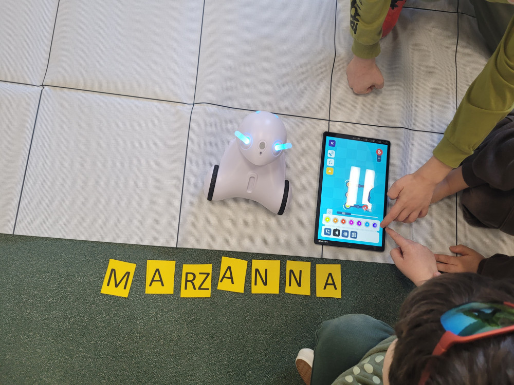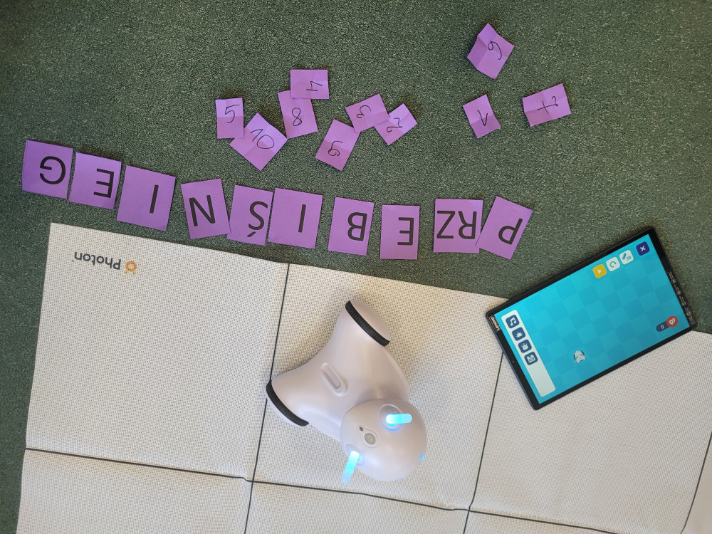 Już od wczesnych godzin porannych uczniowie z dużym entuzjazmem oczekiwali rozpoczęcia zajęć. Wiedzieli bowiem, że tego dnia będą mieli okazję pracować z innowacyjnymi narzędziami, które nie tylko uatrakcyjniają naukę, ale również pozwalają rozwijać nowe umiejętności. Zajęcia zostały starannie przygotowane – wykorzystano matę ze współrzędnymi, roboty Photon, tablety oraz rozsypanki literowe, które stanowiły integralną część zaplanowanych aktywności.