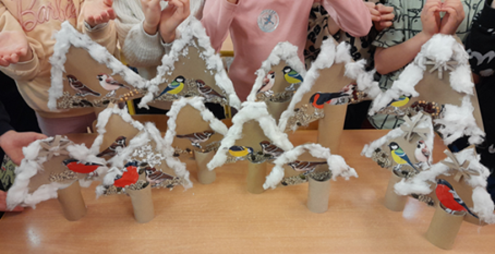 W ostatnich tygodniach w naszej świetlicy działo się naprawdę wiele. Zima za oknem stworzyła bajkowy krajobraz. Dzieci z zachwytem obserwowały ośnieżone drzewa i białe dachy domów. Zimowy pejzaż stał się inspiracją do wykonania prac plastycznych, podczas których uczniowie starali się uchwycić magię tej wyjątkowej pory roku. Powstały barwne obrazy przedstawiające zimowy krajobraz. Przy okazji rozmów o zimie poruszyliśmy bardzo ważny temat. Wspólnie zastanawialiśmy jak możemy pomagać zwierzętom w tym trudnym czasie. Szczególną uwagę poświęciliśmy ptakom zimującym w Polsce, takim jak wróble, sikorki, gile itp.. Dzieci dowiedziały się, że zimą ptakom trudniej znaleźć pożywienie, dlatego warto pomagać im poprzez dokarmianie w odpowiedni sposób. Uczniowie wykazali się dużą wrażliwością i troską o przyrodę.
